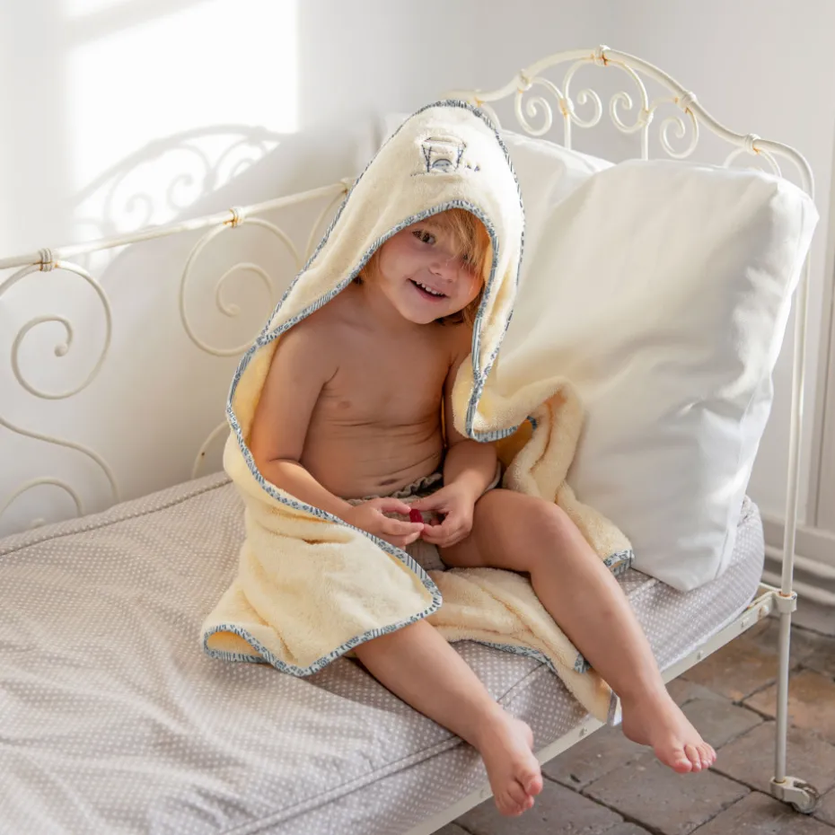 Ce linge de bain est conçu en coton biologique pour respecter la peau des plus petits.