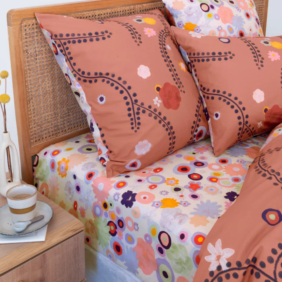 Ce drap housse arbore des motifs fleuris vintage pour venir compléter la parure de lit.