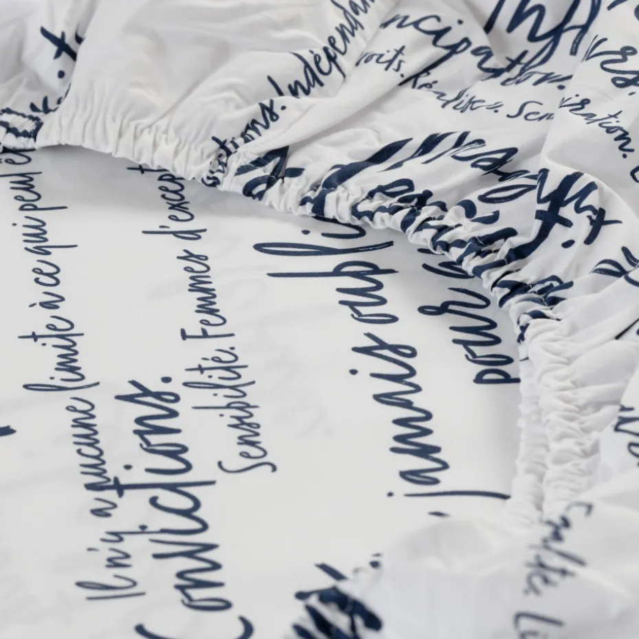 Ce drap housse original met en scène des citations des Simones qui ont marqué l'histoire.