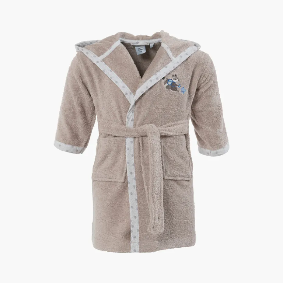 Destiné aux petits garçons comme aux petites filles, le peignoir Devine prend soin des tout-petits à la sortie du bain grâce à sa composition en coton biologique certifié GOTS. De coloris lin, cet accessoire de toilette revêt une adorable broderie sur la poitrine avec un raton laveur baroudeur, qui s’accompagne d’un micro-motif champêtre imprimé. Un produit à faire broder pour un cadeau personnalisé.