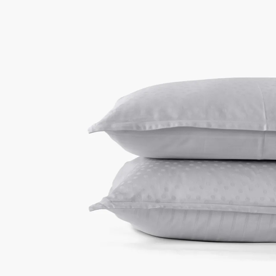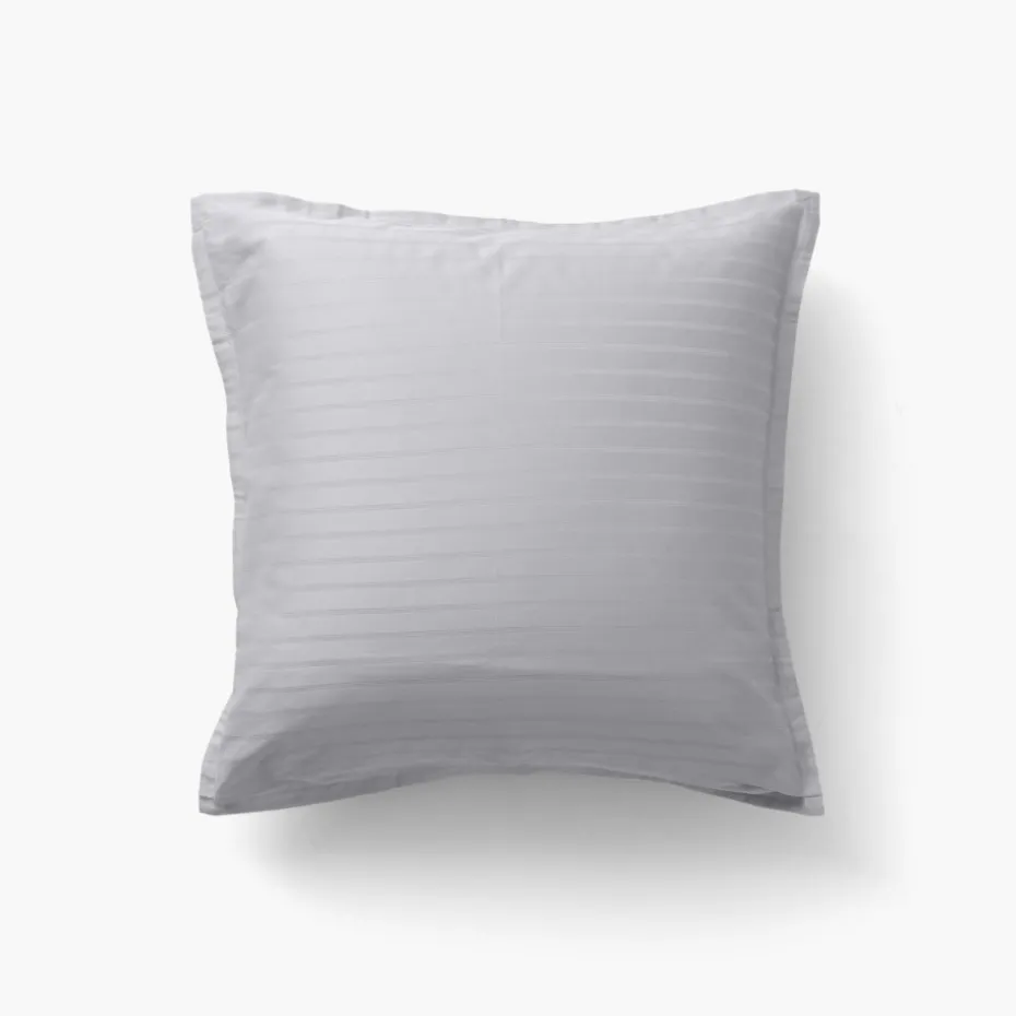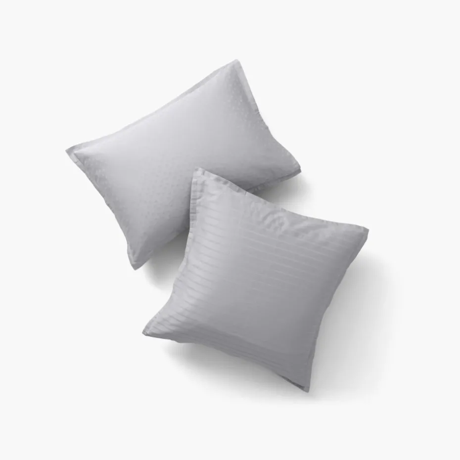 Shop Taie d’oreiller carrée satin de coton jacquard pois et rayures Prestige tourterelle Taies D’oreiller