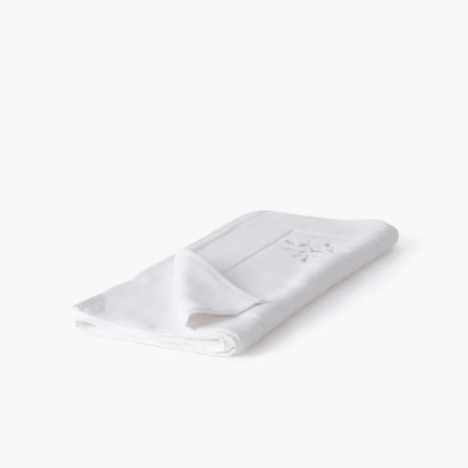 Ce tapis de bain est orné d'une broderie subtile en fil irisé pour une touche d'élégance.