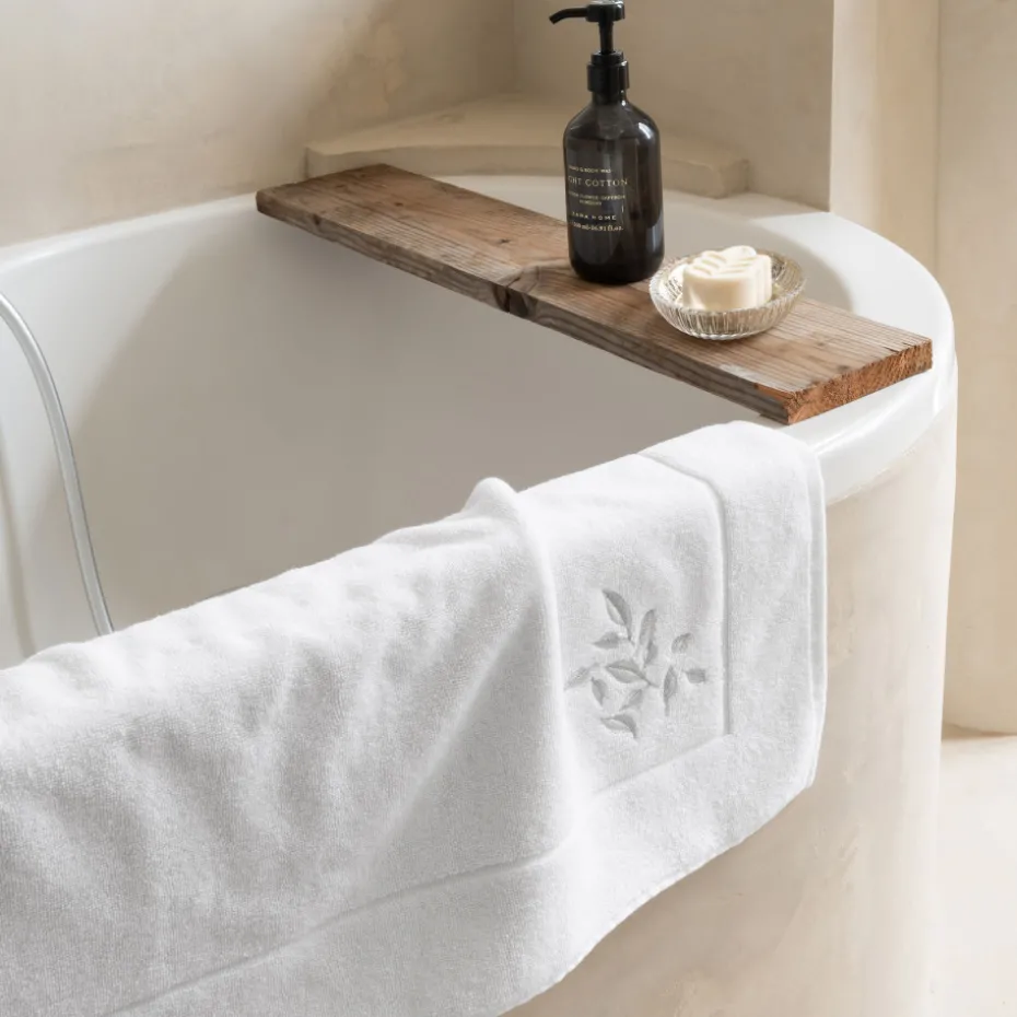 Confectionné en bouclette de coton, le tapis de bain Equinoxe se décline en deux coloris des plus élégants. Laissez-vous séduire par sa broderie de feuilles raffinée pour décorer la salle d’eau.