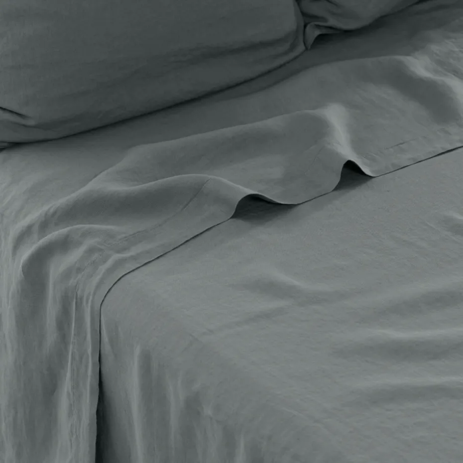 Le drap de lit uni Songe est en pur lin lavé des Flandres, 165 g/m². D’un naturel absorbant et aéré, le lin a pour atout de réguler le corps.