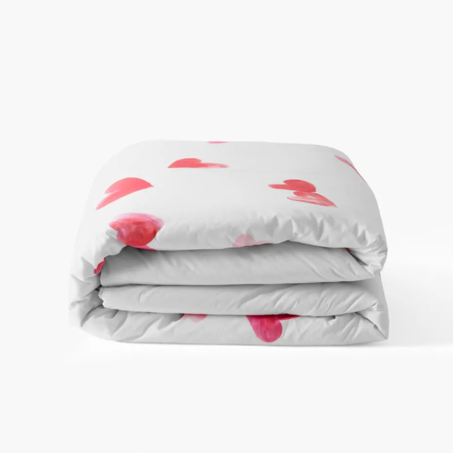Une parure de lit débordante d'amour et pleine de douceur lorsqu'on se glisse dans le lit.