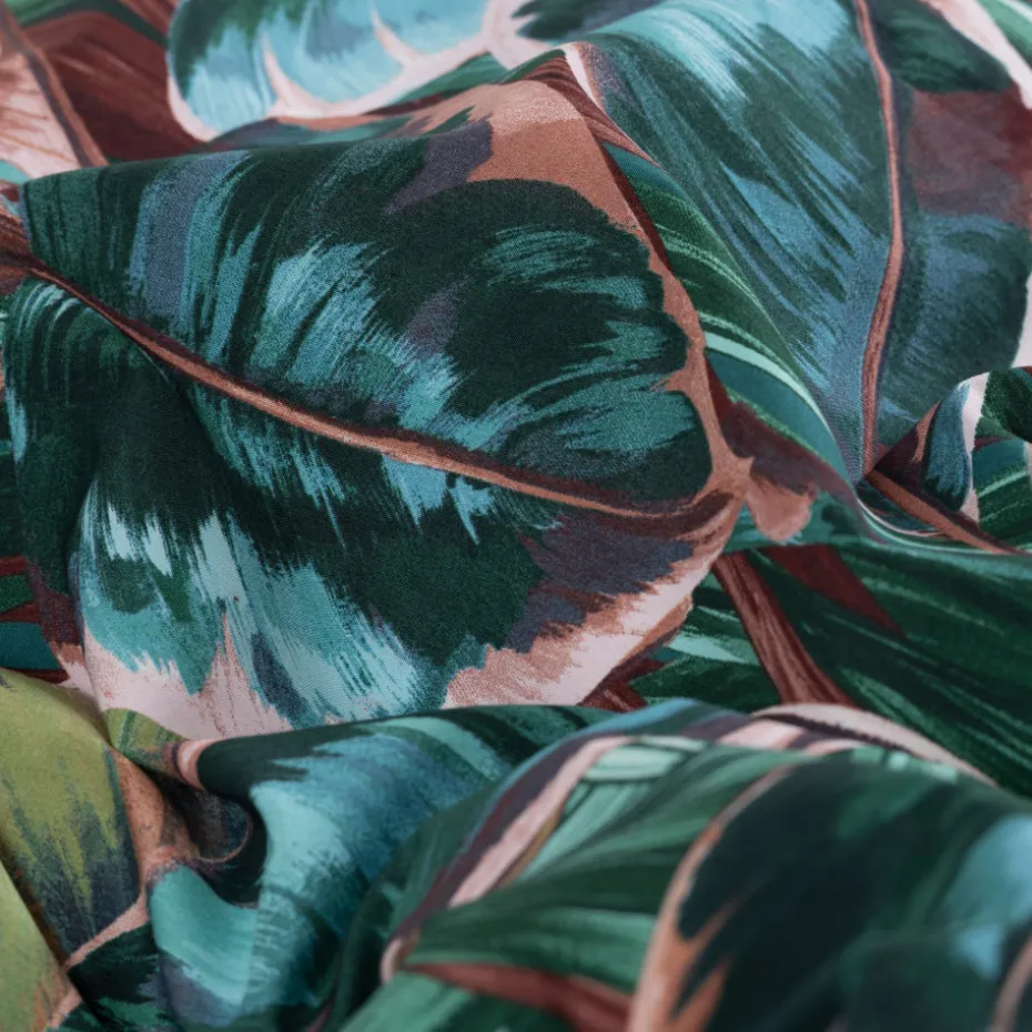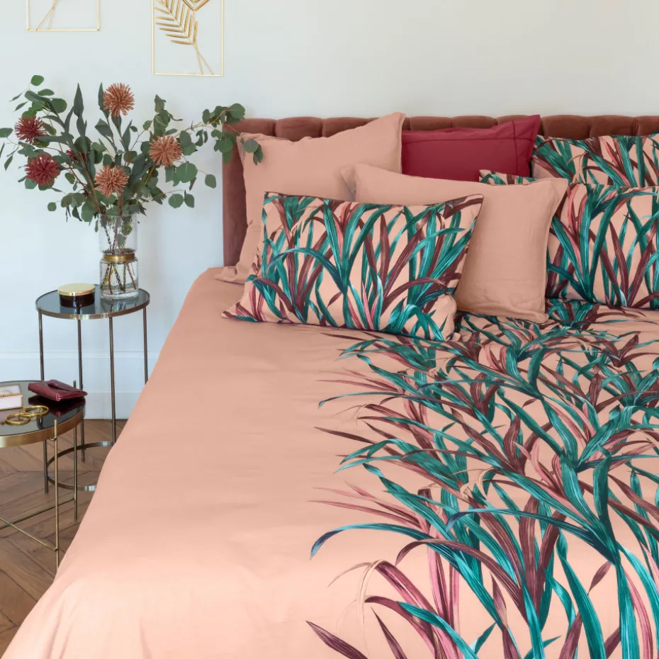 Faites vibrer votre décoration avec la housse de couette Calathéa et son double décor végétal. Inspirée de la flore sud-américaine, cette parure de lit exotique et chic dépeint un feuillage haute couture très ornemental, naturellement riche en contrastes de couleurs et en relief pour un effet 3D puissant. Laissez-vous bercer par cette ambiance venue d’ailleurs, la promesse de nuits teintées d’exotisme.