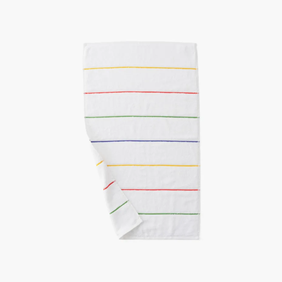 Les adeptes de la décoration colorée vont adorer notre serviette Rosella en coton et viscose de bambou. Elle arbore de fines rayures multicolores.